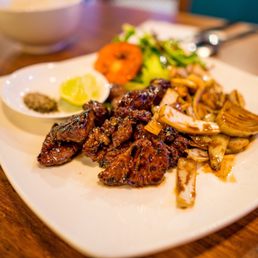 I finally had a chance to try this restaurant that I've now walked by probably 3-4 times. The owner is honestly so nice and was very welcoming to talk about his restaurant and how he came to take it over recently. First off, I enjoyed the skewers (they came as 3), they came with a peanut sauce that was delightful to dip in. I did also get to try their baos but not my fav. Then I ordered canh chua which is one of my favorite Viet soups. There were 2 options for protein, swai and shrimp. Usually the soup is served with catfish, but the owner did inform me that they changed this to cater to folks (ppl of Portland) not used to bones. :( cmon y'all let the food of my ppl be cooked properly. The soup was good (a very shareable portion! As it should be), but not my fav. Still, it was very nice they offered this soup, I feel like it's a rare find mostly in Portland. The restaurant is more focused on individual entrees with a few dishes for family style fyi. But still I'd definitely say give them a chance and talk to the owner about the food and how it's usually made! You'll learn more about our food :) hopefully we'll push for more authentic food in Portland someday rather than catering to ppl